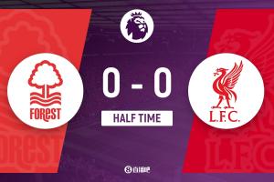 体育资讯2月22日讯 北京时间2月22日22:00,2025-26赛季英超联赛第27轮,诺丁汉森林坐镇诺丁汉城市足球场迎战利物浦。上半场阿利松救险,利物浦半场0射正,暂0-0战平诺丁汉森林。