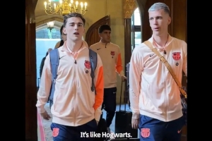 据巴萨官方发布的视频,随队出征的加维在抵达酒店时发出感叹,称赞了这里的环境。